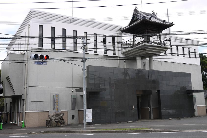 交差点に向かって3階に移設された鐘楼がランドマーク的な存在とっている存在感ある宗教建築です。