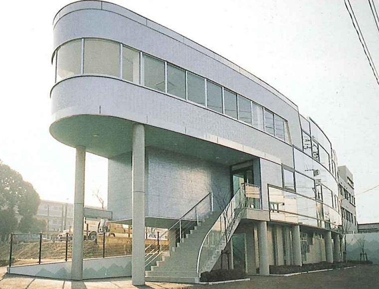 船のようなシルエットに水平連続窓やピロティがアレンジを加える熊本ゼミナールの清水校です。