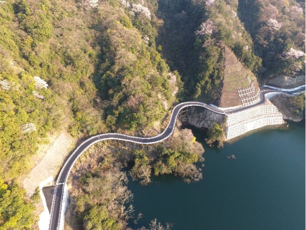 本工事は大分川ダム工事の内、ダム湖外周の付替林道の道路(橋梁床版)工事の施工を行いました。 工事施工にあたりましては、国土交通省の方々のご指導、ご鞭撻ならびに地域住民、工事関係者の方々のご理解とご協力を頂いただくなかで、工期内無事故・無災害、安全第一を目標に取組んでまいりました。心より感謝し御礼申し上げます。