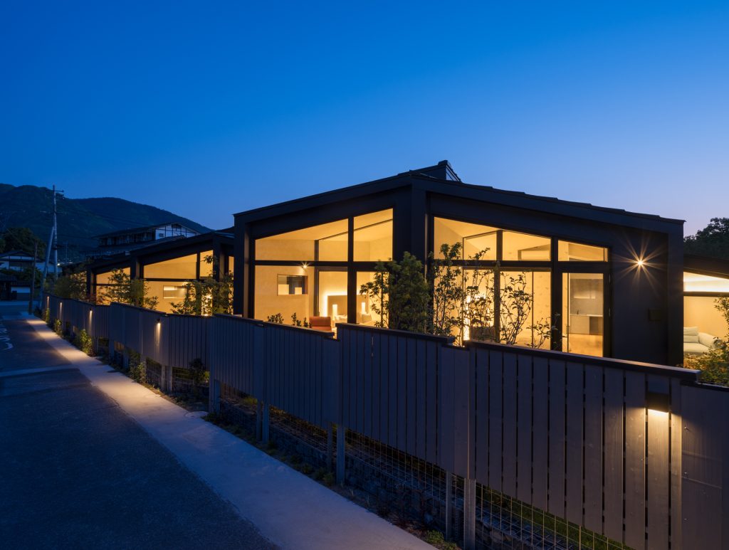 当建物は、湯布院の老舗旅館、玉の湯様の新規事業として保養目的を視野に入れた長期滞在ホテルとなります。本館とは趣を変えつつ木造にこだわった構造と、新しいデザインを融合、平屋で在りながら、客室の殆どより望める由布岳は室内にいながら自然との一体感が感じられる絶景を楽しめます。屋根の形状への対応は大変でしたが、玉の湯様、スピングラス様及び協力会社の皆様、当社スタッフの御尽力のお陰で無事完成することができました。ありがとうございます。